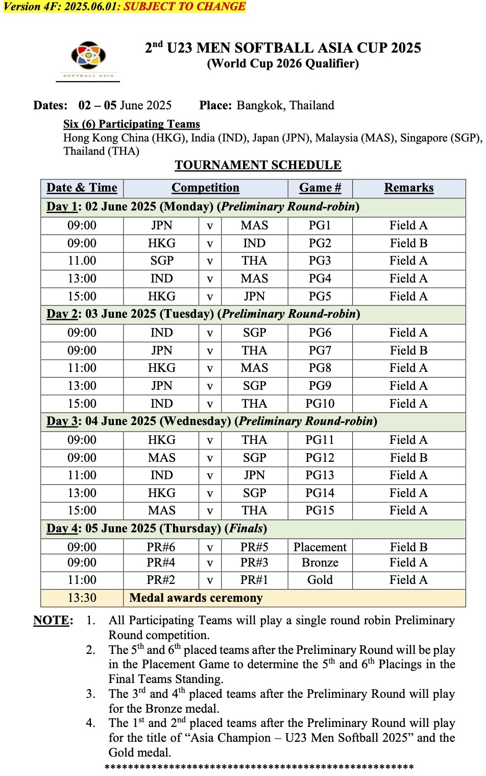 2nd U23 Men Softball Asia Cup 2025 – World Cup Qualifier