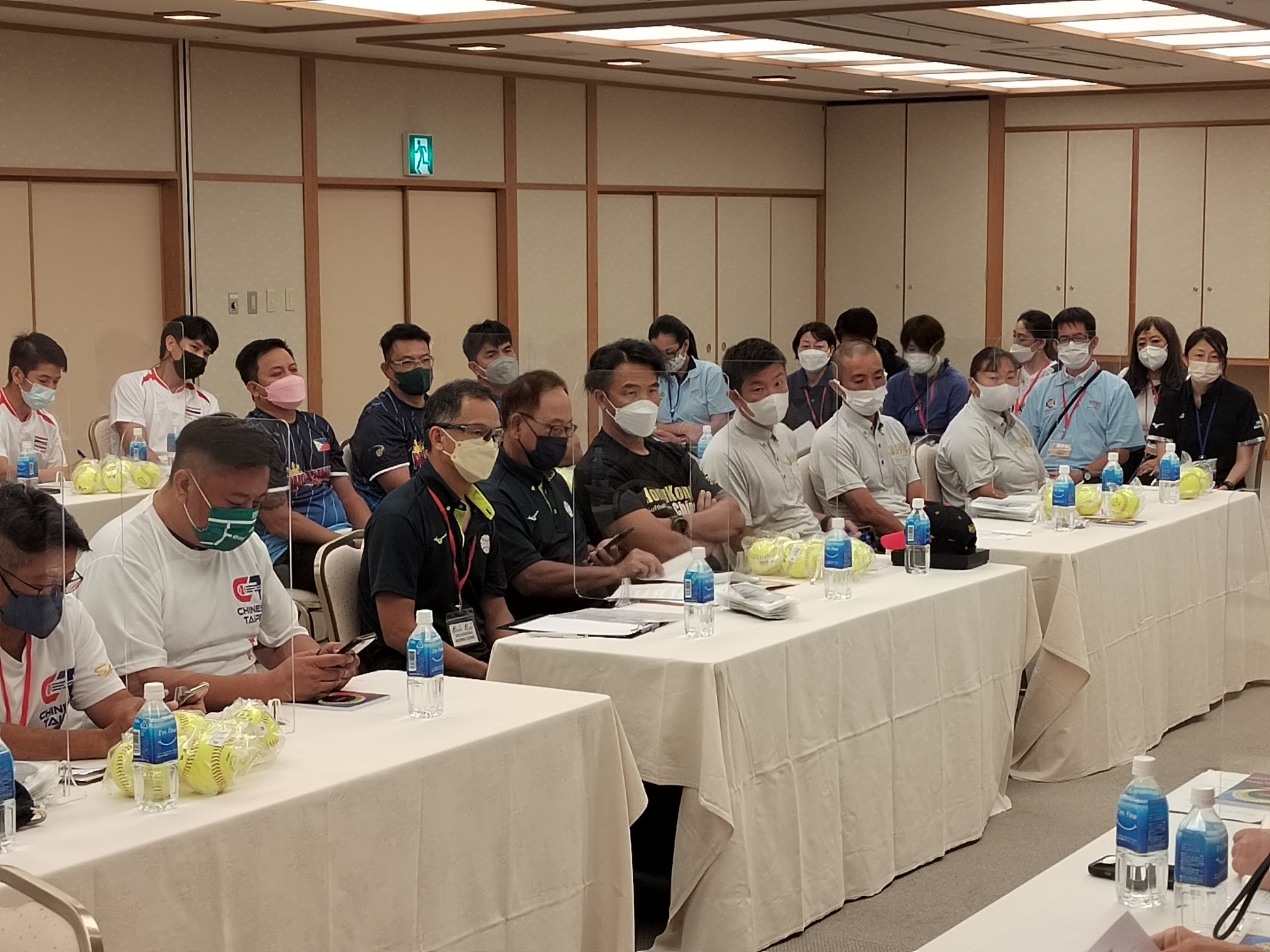 All of them pledged their continuous support for softball in their speeches, and presented souvenirs of Kochi and Shimanto City to team managers from Chinese Taipei, Hong Kong, India, Thailand, Singapore, Philippines and host Japan.