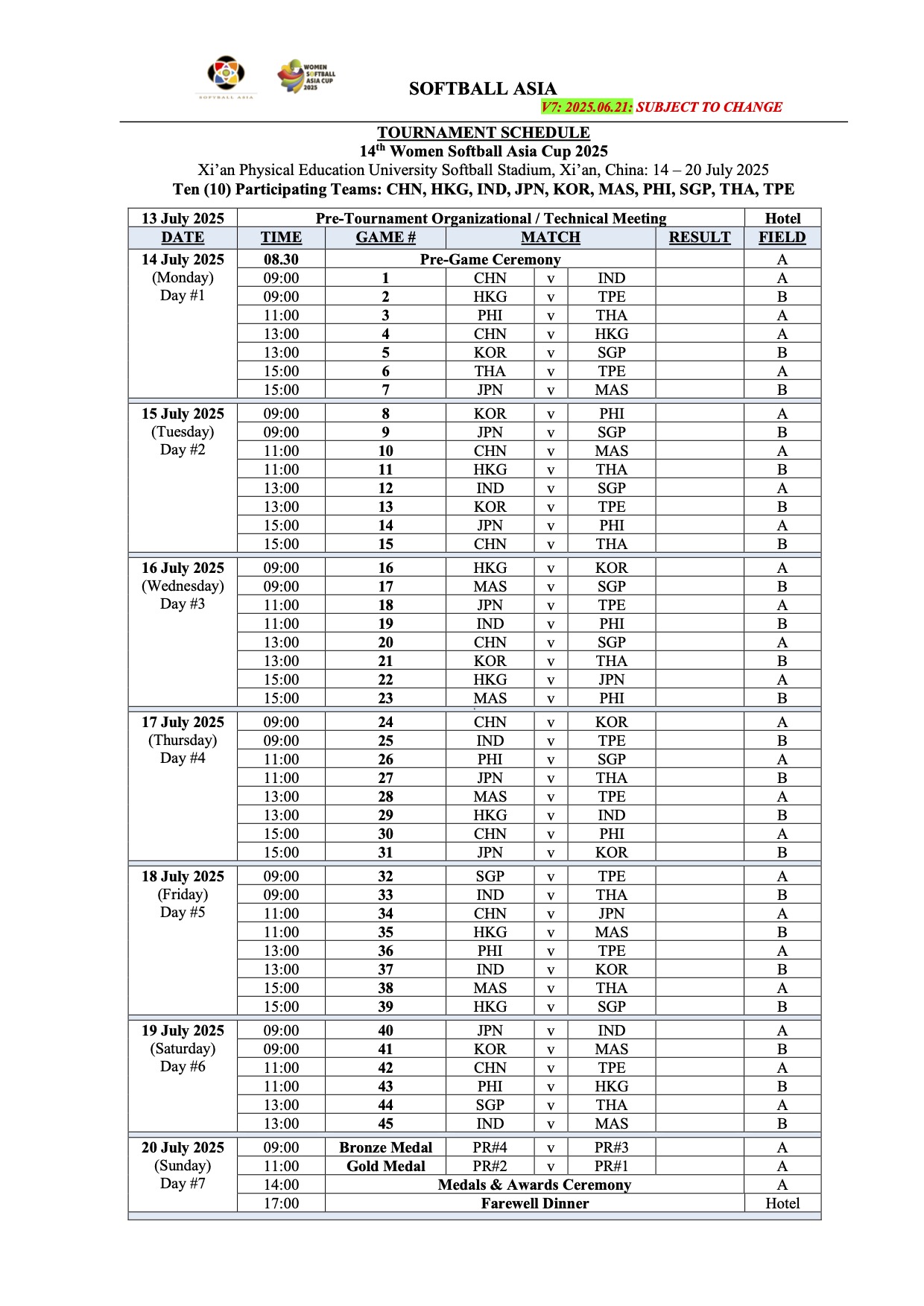 Women Softball Asia Cup 2025 Xi’an CHN